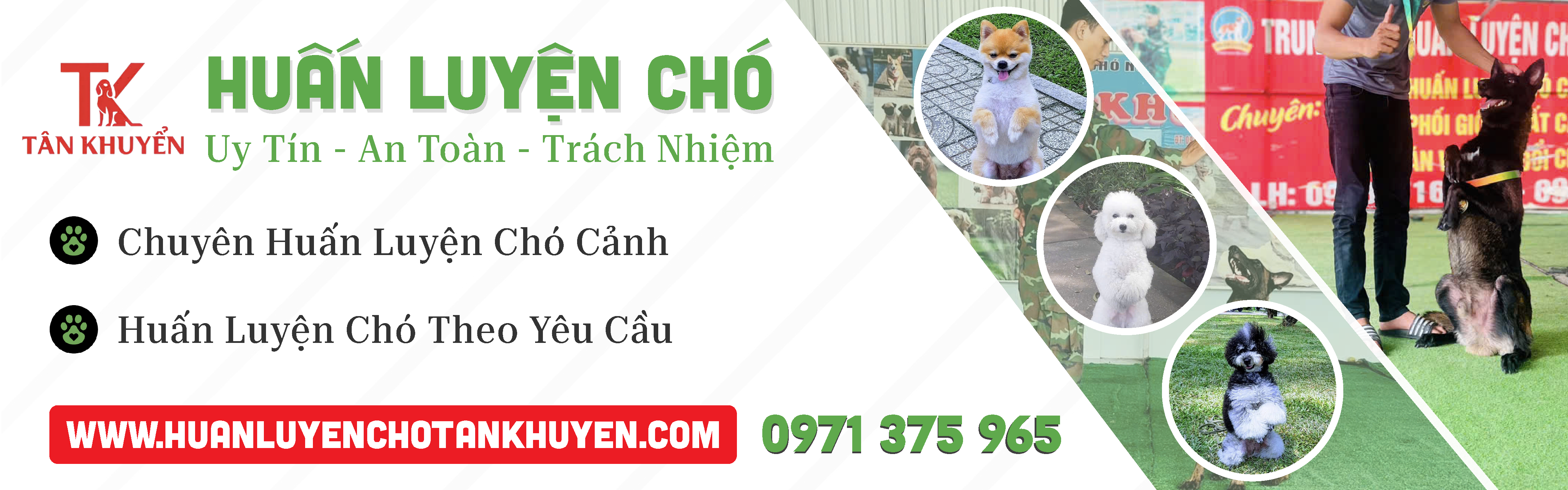 Trường huấn luyện chó Tân Khuyển là một địa chỉ uy tín và chuyên nghiệp trong lĩnh vực huấn luyện chó tại thành phố Hồ Chí Minh. Với đội ngũ huấn luyện viên giàu kinh nghiệm và tâm huyết, Tân Khuyển tự hào là nơi cung cấp các dịch vụ huấn luyện chó tốt nhất cho các chủ nuôi chó.